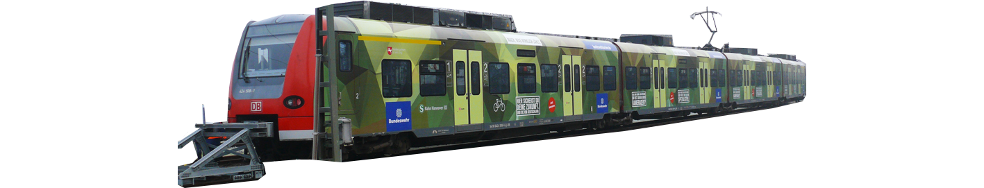 Eines der größten Projekte bei der Bundeswehr war die Komplettfolierung einer Regionalbahn in Hannover. Von der Planung und dem Konzept mit der DB bis zur Reinzeichnung habe ich an diesem Projekt mitgewirkt.