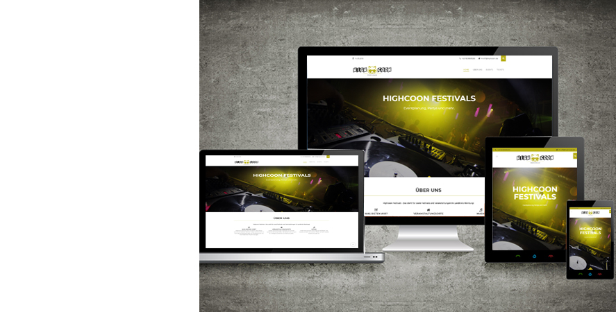 Highcoon.de plant und organisiert Veranstaltungen und Festivals im Landkreis Nienburg. Hierfür entstand eine responsive Webpräsenz im CMS Joomla und die Umsetzung eines Corporate Designs.