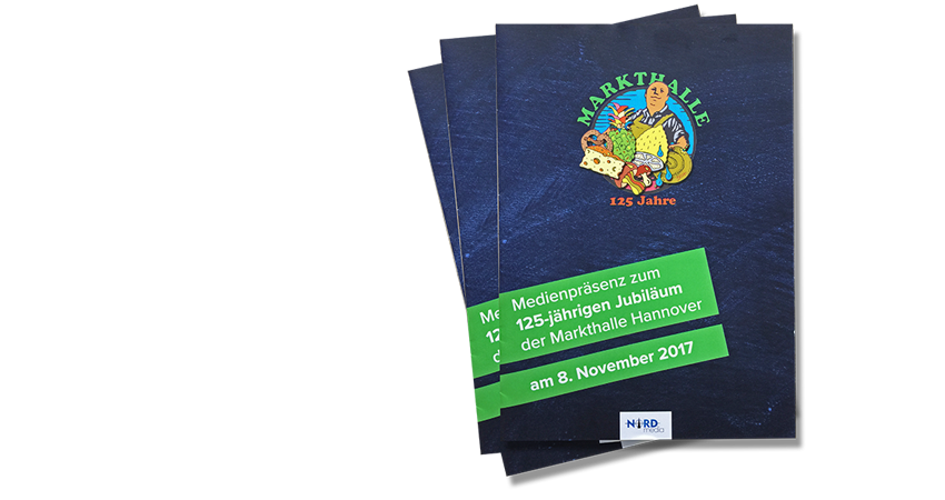 Für das 125-jährige Jubiläum der Markthalle Hannover entstand dieses Magazin mit den wichtigsten Medienpräsenzen der letzten Jahre.